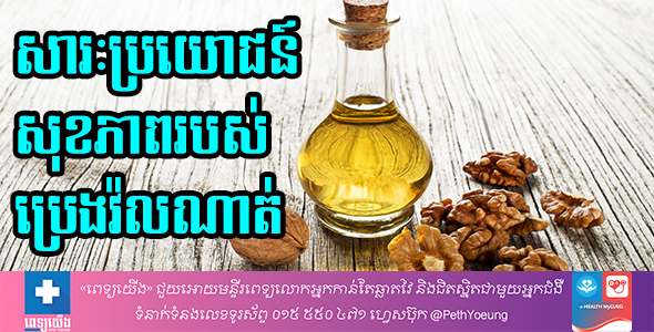 ប្រេងវ៉លណាត់ មានអត្ថប្រយោជន៍ច្រើនដល់សុខភាព ព្រោះវាសម្បូរសារធាតុចិញ្ចឹមខ្លាញ់ល្អ សម្រាប់សុខភាព និងប៉ូលីហ្វេណុល។ ខាងក្រោមនេះ ជាអត្ថប្រយោជន៍សុខភាពរបស់ប្រេងវ៉លណាត់៖